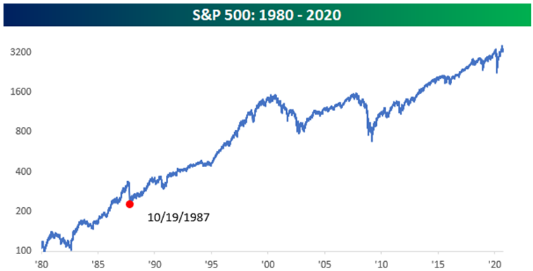 To illustrate this point let’s look at a brief research note about Black Monday from my partners at Bespoke Investment Group. They touch on how bad the market environment was at the time and how, in the decades and all the market events since, stocks and bonds still generated good returns for long-term investors, even if their timing was horrible. This will be helpful to remind ourselves of in the coming months.