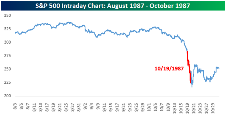 Black Monday, October 19th, 1987, is a stock market event that’s long been an example of how fast things can go wrong when investors behave badly. There were a variety of reasons, structural and otherwise, for why it happened the way it did, but the bottom line is that investors really freaked out and selling begat more selling.